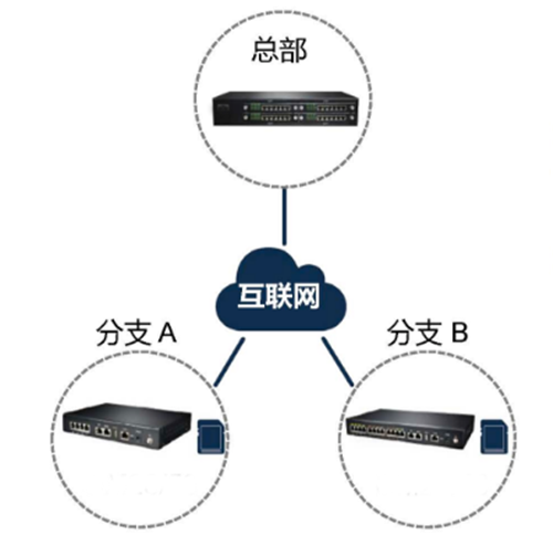 分布式或者連鎖型企業:總部部署南京申甌IP電話交換機,分支或者門店的電話交換機通過穿透服務直接注冊到總部,統一管理。