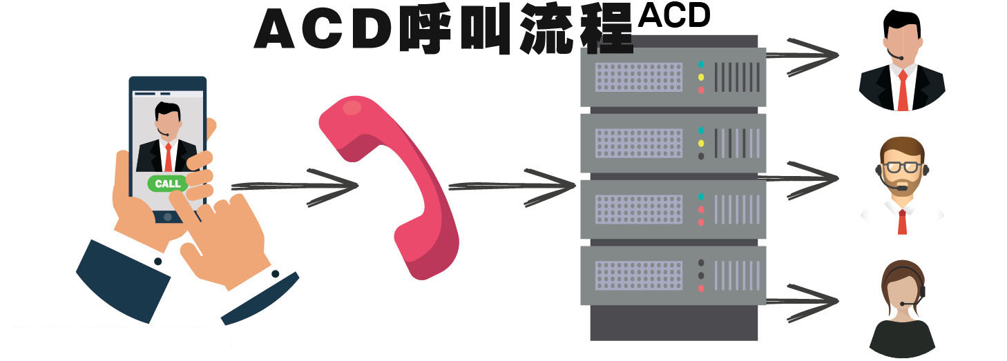 自動呼叫分配系統(ACD)包括幾個復雜的功能,這些功能將其與交互式語音應答系統(IVR)區分開來。實際上,交互式語音應答系統(IVR)通常是自動呼叫分配系統的一個組件。自動呼叫分配系統的主要工作是根據不同的參數(例如一天中的時間,接收到的呼叫量,電話號碼的來源,解決查詢所需的技能等)以可編程的方式將呼叫分發給不同的座席。