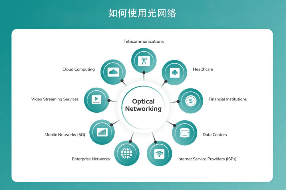 如今,各行各業(yè)都在使用光網(wǎng)絡(luò)進(jìn)行高速高效的數(shù)據(jù)傳輸。其中包括電信、醫(yī)療保健、金融機(jī)構(gòu)、數(shù)據(jù)中心、互聯(lián)網(wǎng)服務(wù)提供商 (ISP)、企業(yè)網(wǎng)絡(luò)、5G 網(wǎng)絡(luò)、視頻流服務(wù)和云計(jì)算。